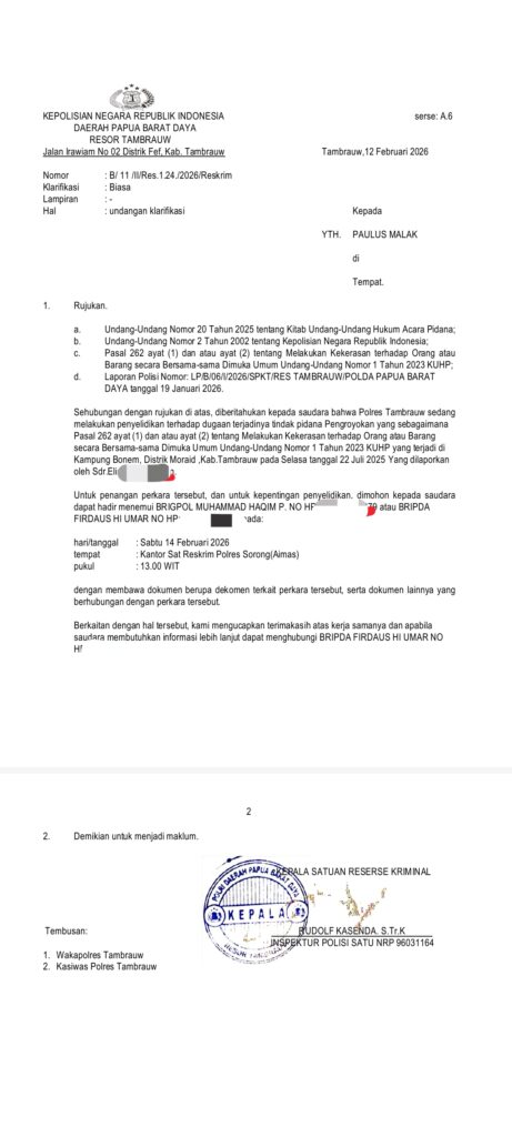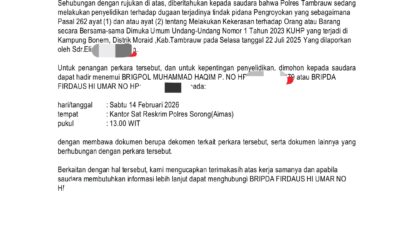 BERITA BARUHukum Dan Kriminal Pelaku Penganiayaan Melaporkan Korban Yang Dianiaya, Diduga Penyidik Polres Tambrauw Membuat Laporan Tandingan Admin 4 hari ago