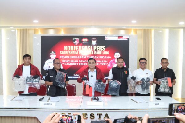 Batam, suara konservatif.id – Satuan Reserse Kriminal Polresta Barelang menggelar konferensi pers terkait pengungkapan tindak pidana pencurian dengan kekerasan yang terjadi di wilayah Bengkong, Kota Batam. Kegiatan tersebut dilaksanakan di Aula Wicaksana Laghawa Lantai 2 Polresta Barelang dan dipimpin langsung oleh Kasat Reskrim Polresta Barelang Kompol M. Debby Tri Andrestian, S.I.K., M.H.Li., didampingi Kasi Humas…