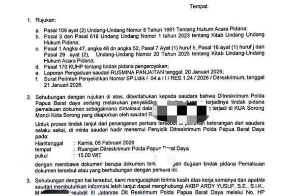 Sorong,suarakonservatifmid – Masyarakat rencana akan palang jalan Sorong – Tambraw, menurut informasi karena pihak Kepolisian belum menangkap pelaku pengeroyokan Paulus Malak di kampung Mega,distrik Moraid ,kabupaten Tambrauw pada bulan Juli 2025. Berita terkait : https://suarakonservatif.id/korban-pengeroyokan-paulus-malak-berharap-laporannya-di-polda-papua-barat-daya-di-tindak-lanjuti-hingga-pelaku-ditangkap/ Hal yang membuat masyarakat semakin emosi adanya intimidasi kepada masyarakat serta rekayasa kasus lain lagi dengan sengaja kesampingkan kasus pengeroyokan…