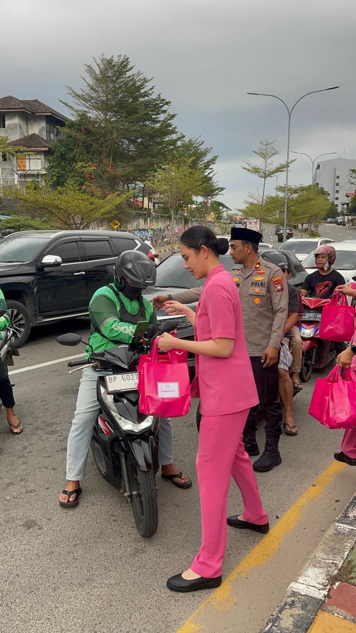 Polsek Lubuk Baja Bersama Bhayangkari Ranting Lubuk Baja Bagikan Takjil kepada Pengguna Jalan sebagai Wujud Kepedulian